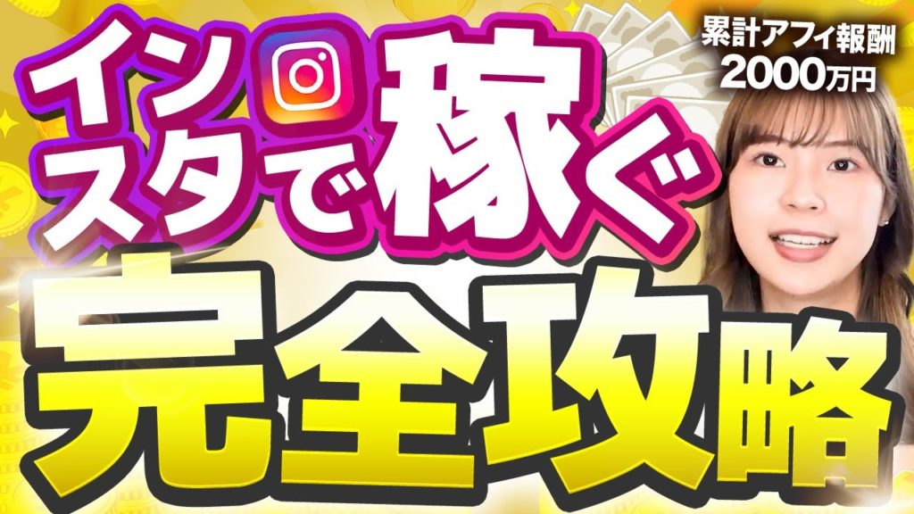 画面中央に最もインパクトのある「インスタで稼ぐ」というキーワードを大胆に配置し、「完全攻略」という訴求要素と組み合わせることで、